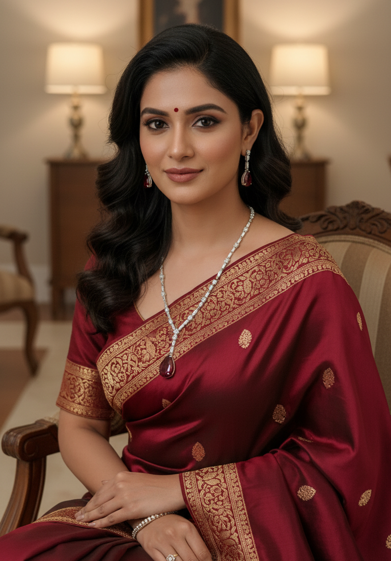 Rich Teardrop Gemstone: The focal point is the large, saturated pear-cut (teardrop) red gemstone, which provides a spectacular pop of deep color against the brilliant, colorless metal and surrounding stones.